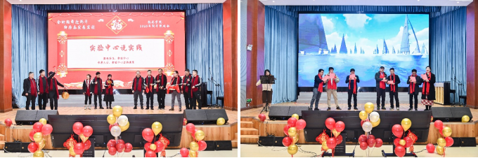 随后,机关老师们带着一曲旋律欢快、舞姿婀娜的歌舞《上春山》,让我们感受到了春日的勃勃生机与无限希望;志不求易者成、事不避难者进,色色视频全体班子成员朗诵自编散文诗《有这么一群人》,配上钢琴演奏和背景图片,展现了全院上下齐心协力、砥砺奋进精神;实验中心全体老师们用风趣幽默的方式送上了三句半节目《实验中心说实践》;院青科协全体成员带来朗诵节目《启航》,体现了青年科技工作者们对未来的无限憧憬与坚定信念;内河驾专委的武术操《中国功夫》,诠释了航海坚毅与智慧的精神;最后,联欢会在船培中心嘹亮、温暖人心的《歌唱祖国》中落幕。期间,穿插着抽奖活动,更是点燃了全场氛围。