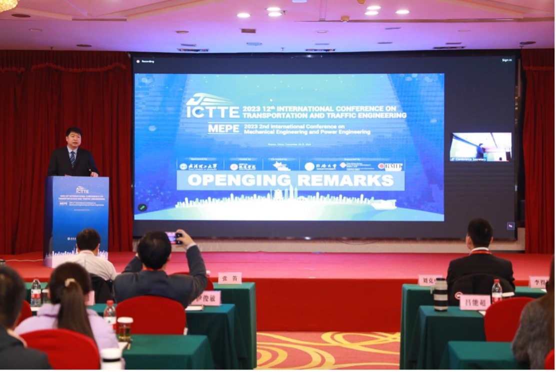 On December 30, 2023, the 12th International Conference on Transportation and Traffic Engineering (ICTTE 2023), hosted by Wuhan University of Technology and organized by the College of Navigation, was held at Wuhan Huatian Hotel. The conference was held concurrently with the 2nd International Conference on Mechanical Engineering and Power Engineering (MEPE 2023) in a hybrid format (online and offline). Vice President Zhang Di attended the event, with Professor Liu Kezhong (Dean of the College of Navigation) serving as Conference Chair. Professor Namkyun Im from Mokpo National Maritime University (South Korea), Vice Deans Zhang Jinfeng and You Anni of the College of Navigation acted as Co-Chairs, while Professor Ma Yong chaired the Organizing Committee. Professors Zhou Chunhui, Zheng Yuanzhou, and Professor Liu Wei from Hong Kong Polytechnic University served as Co-Organizing Chairs.