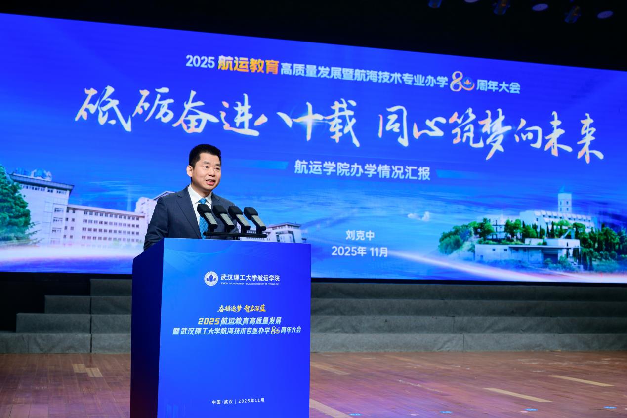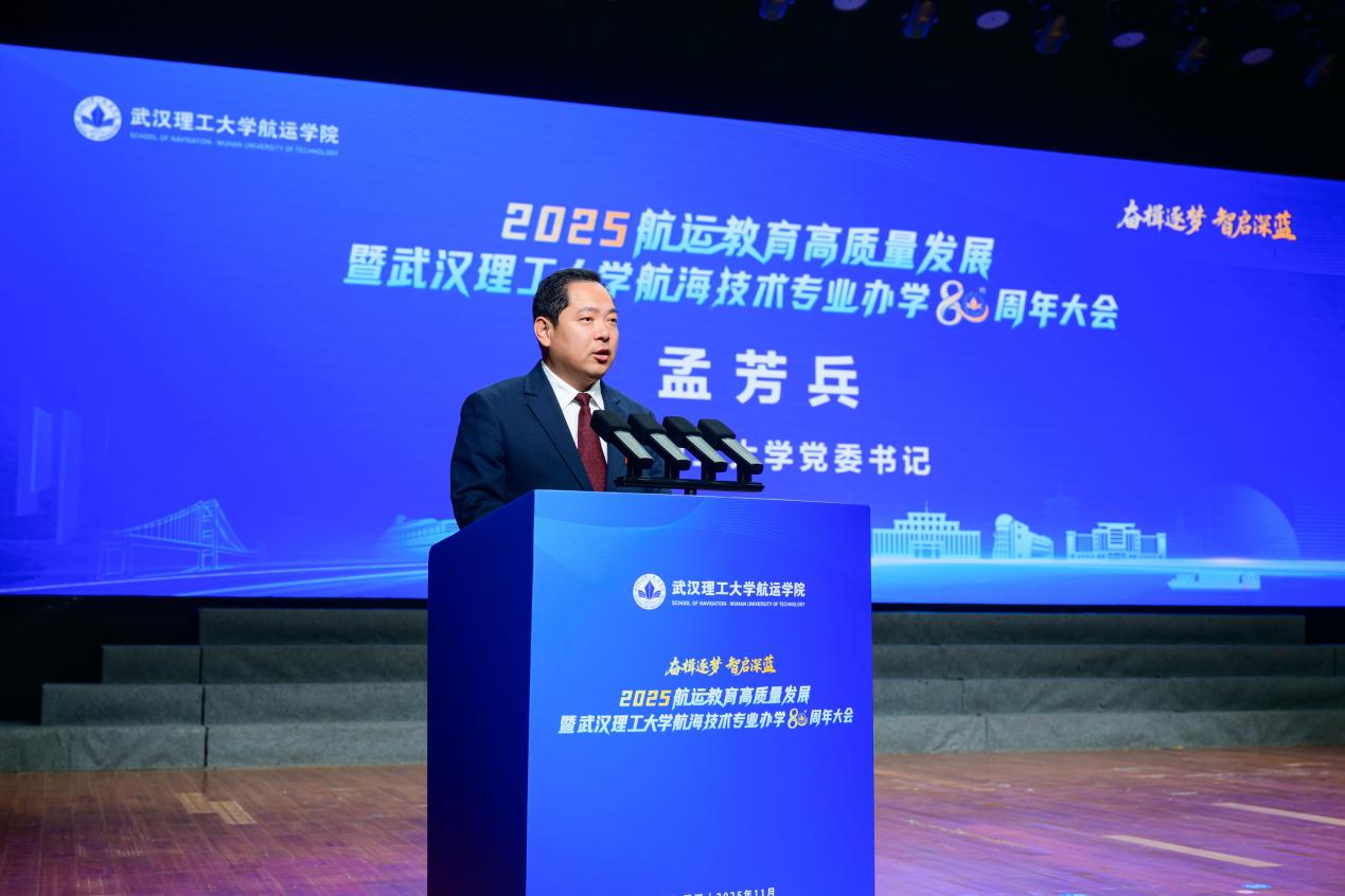 11月9日上午,航运教育高质量发展暨色色视频 航海技术专业办学80周年大会在湖北武汉举行,大会以“奋楫逐梦·智启深蓝”为主题。交通运输部原副部长何建中,中宣部文艺局原局长刘汉俊,原中国海运集团有限公司董事、总经理张国发,中国航海学会理事长、中国工程院院士严新平,校党委书记孟芳兵,副校长罗蓉、张笛,校务委员会副主任刘祖源等出席大会。航运行业企事业单位、部分高校代表、校友代表、学校有关单位负责人及*色色视频 师生参加大会。色色视频 *色色视频 党委书记侯俊主持大会。