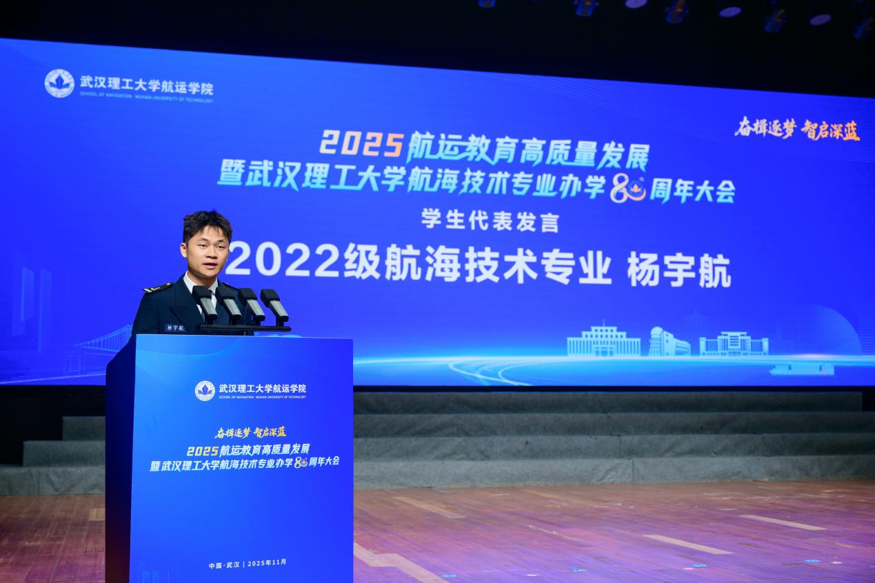 教师代表牟军敏教授和学生代表航海技术2022级本科生杨宇航分别发言。