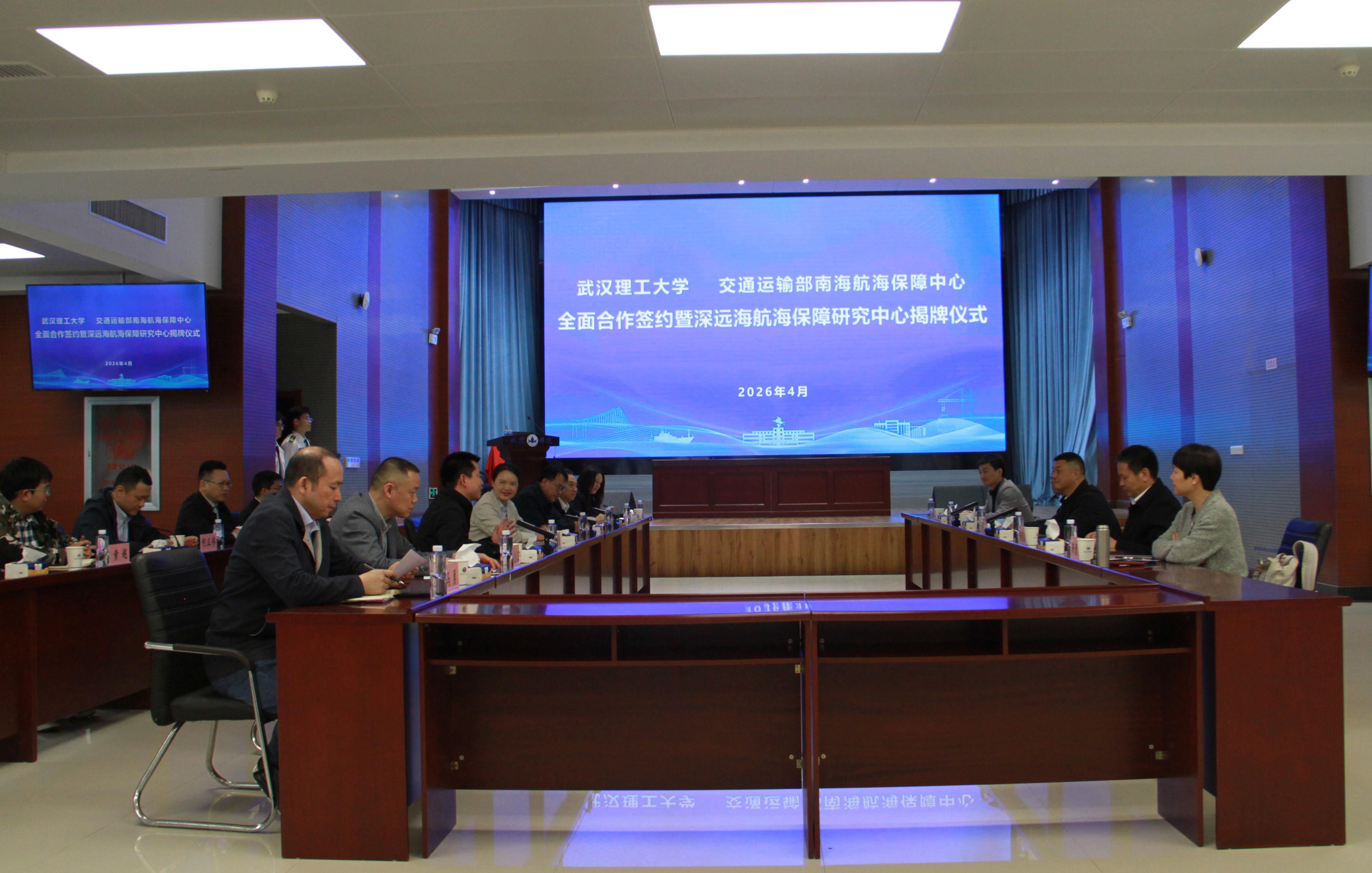 4月23日下午,学校与交通运输部南海航海保障中心全面合作签约暨深远海航海保障研究中心揭牌仪式在余家头校区天象馆一楼报告厅举行。交通运输部南海航海保障中心主任蒋见宇、副校长罗蓉出席仪式。交通运输部南海航海保障中心副主任杨有良、海事测绘处处长杨毅、副处长陈贵花、桥梁和离岸建筑物工作专班科长朱伟,学校科技转化中心主任孙华君、社会合作处副处长丁志卫、*色色视频 党委书记侯 俊、副院长马勇、智能交通中心学科首席教授曹德胜以及色色视频系主任、教师代表等参加仪式。仪式由*色色视频 院长刘克中主持。